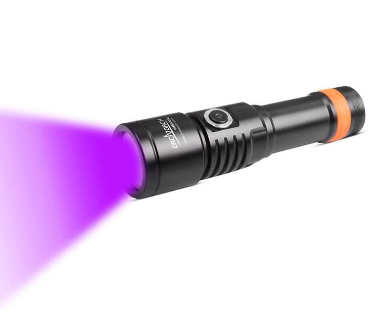 De OrcaTorch D530V UV LED-duiklamp is een professionele onderwatervideolamp. De 395nm LED creëert een verbluffend fluorescerend effect. Het brengt het rif tot leven! Het UV-licht is bijna onzichtbaar voor het blote oog, waardoor alleen de fluorescerende kleuren zichtbaar zijn. De lamp heeft een superbrede lichtbundel van 120 graden zonder blinde vlekken, ideaal voor onderwaterfotografie. De lamp is voorzien van een zijschakelaar van titaniumlegering met twee lichtstanden, waardoor hij gemakkelijk onder water te bedienen is. De LED-indicator op de schakelaar geeft ook de resterende acculading aan.