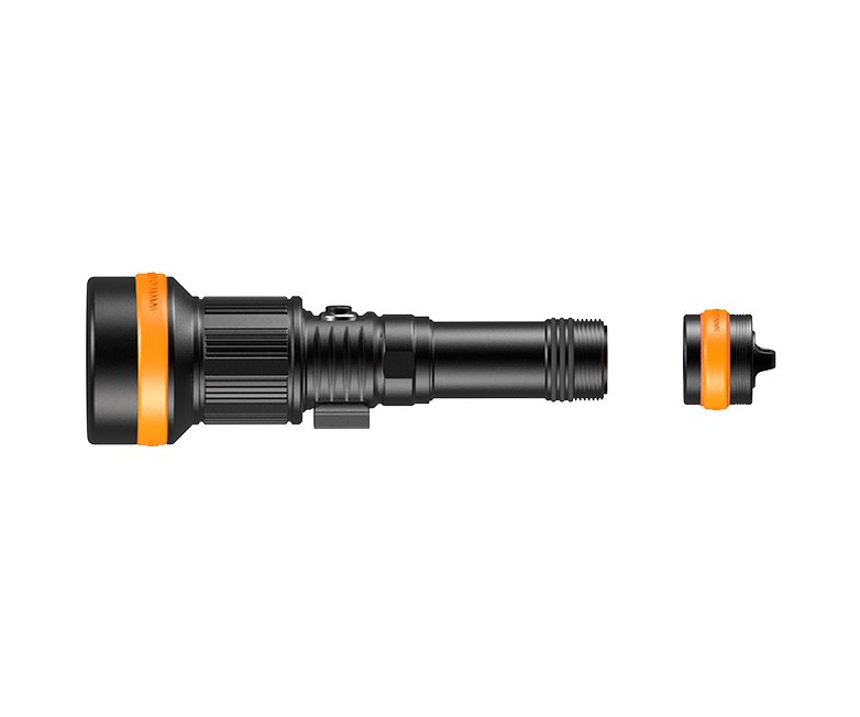 De OrcaTorch ZD710 MK2 is een veelzijdige duiklamp met een instelbare stralingshoek, een maximale stralingsintensiteit van 212500 cd en een bereik van 920 meter. De instelbare stralingshoek (4° tot 72°) biedt flexibiliteit voor diverse onderwaterverlichtingsbehoeften, of het nu gaat om het verkennen van grotten, het observeren van zeeleven of onderwaterfotografie. De ZD710 MK2 is uitgerust met een 5000 mAh 21700 USB-C oplaadbare batterij voor eenvoudig opladen. De lamp beschikt over een veilige vergrendelingsfunctie om onbedoelde activering te voorkomen, waardoor het een ideale duiklamp is voor diepten tot 150 meter en geschikt is voor verschillende onderwateromgevingen.