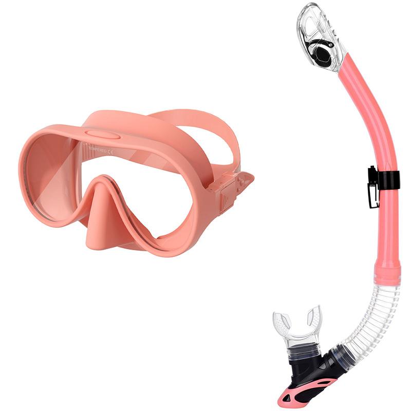 Mooi gekleurde en perfect passend single glas duik – en snorkel masker met bijpassende snorkel , verpakt in draagtas